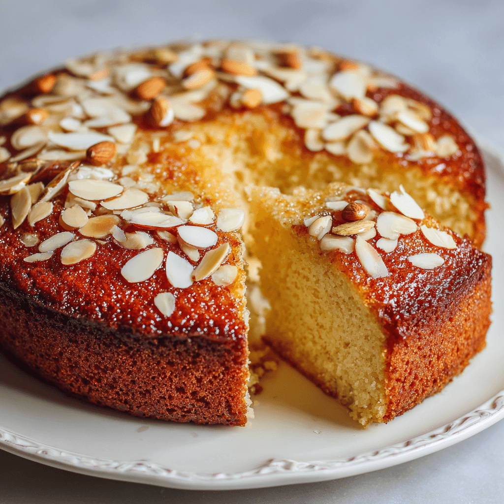 • Nutty almond flavor throughout — Almond flour enriches the cake, while sliced almonds add a toasted, crunchy topping.