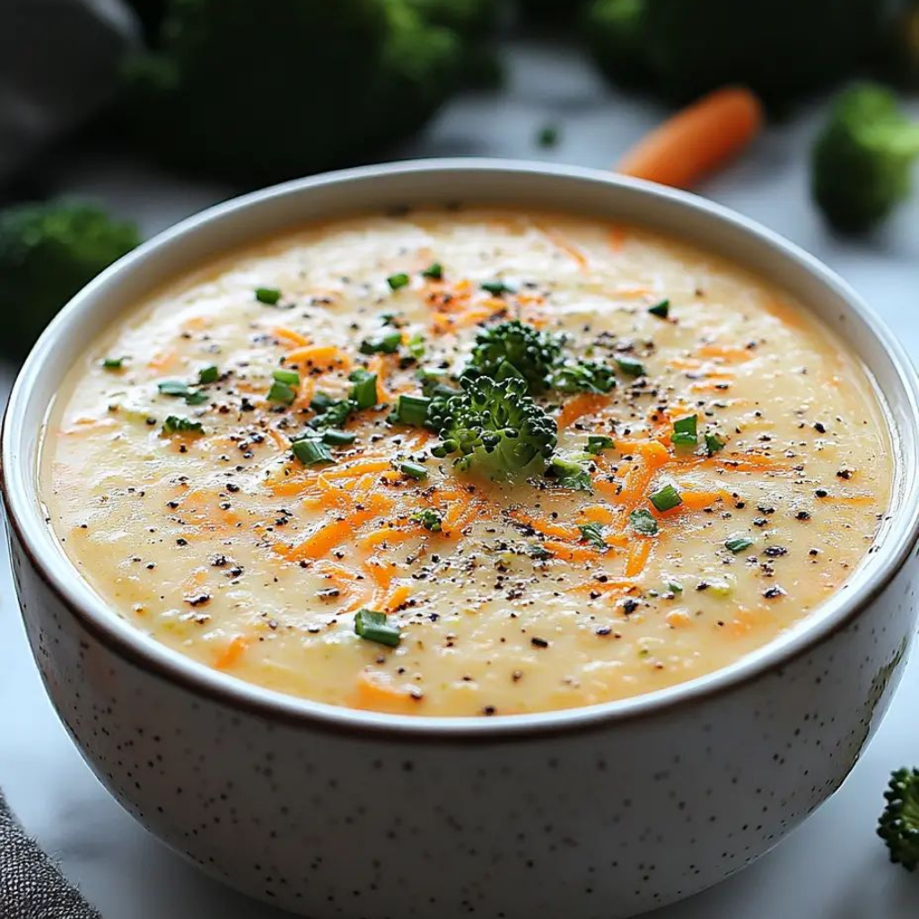 The broccoli maintains its distinct flavor and slight bite, offering textural contrast to the smooth, velvety base. Each spoonful gives you creamy cheese sauce punctuated by tender broccoli florets. The carrots add subtle sweetness that balances the sharpness of the cheese, while the onion and celery provide aromatic depth that keeps the soup from tasting one-dimensional.