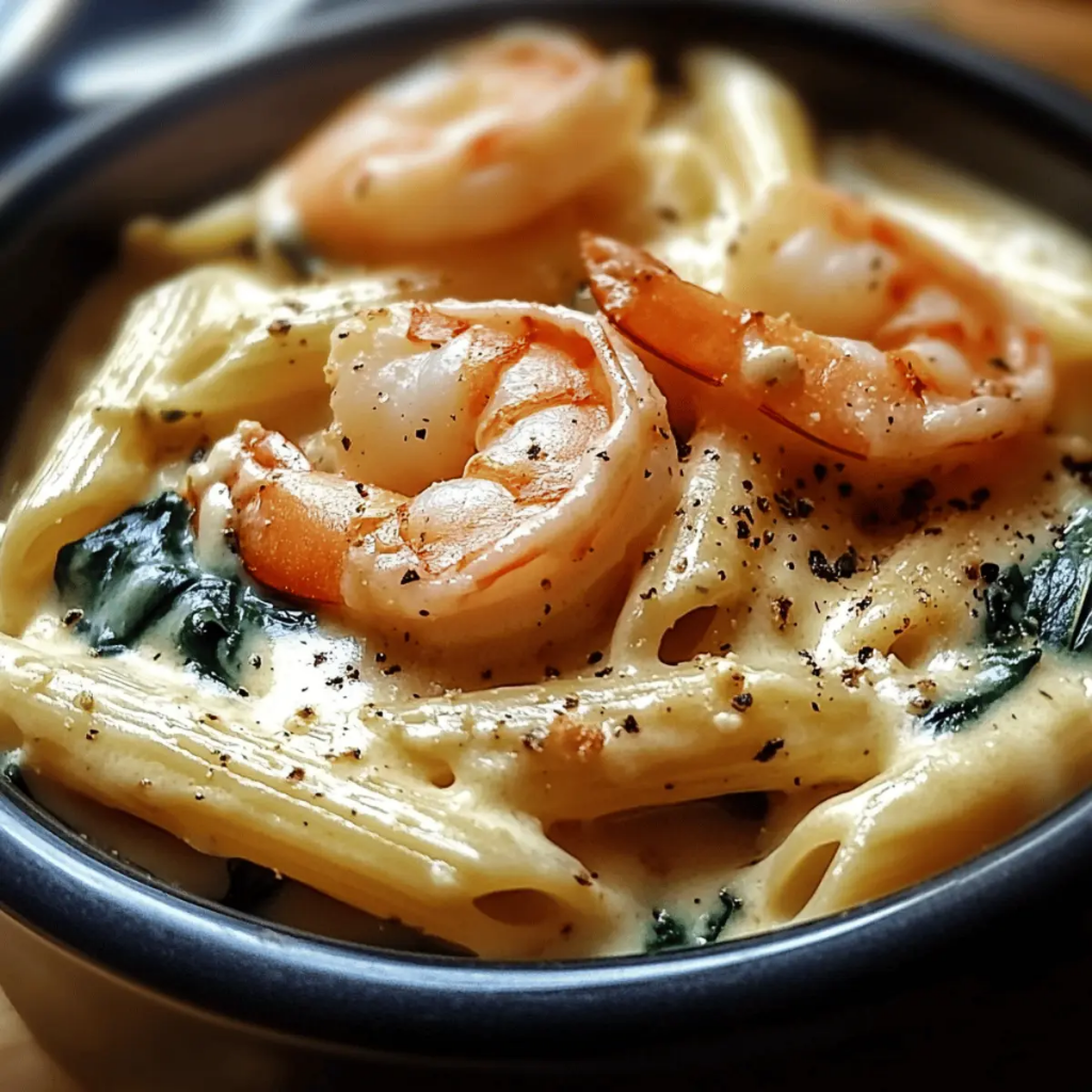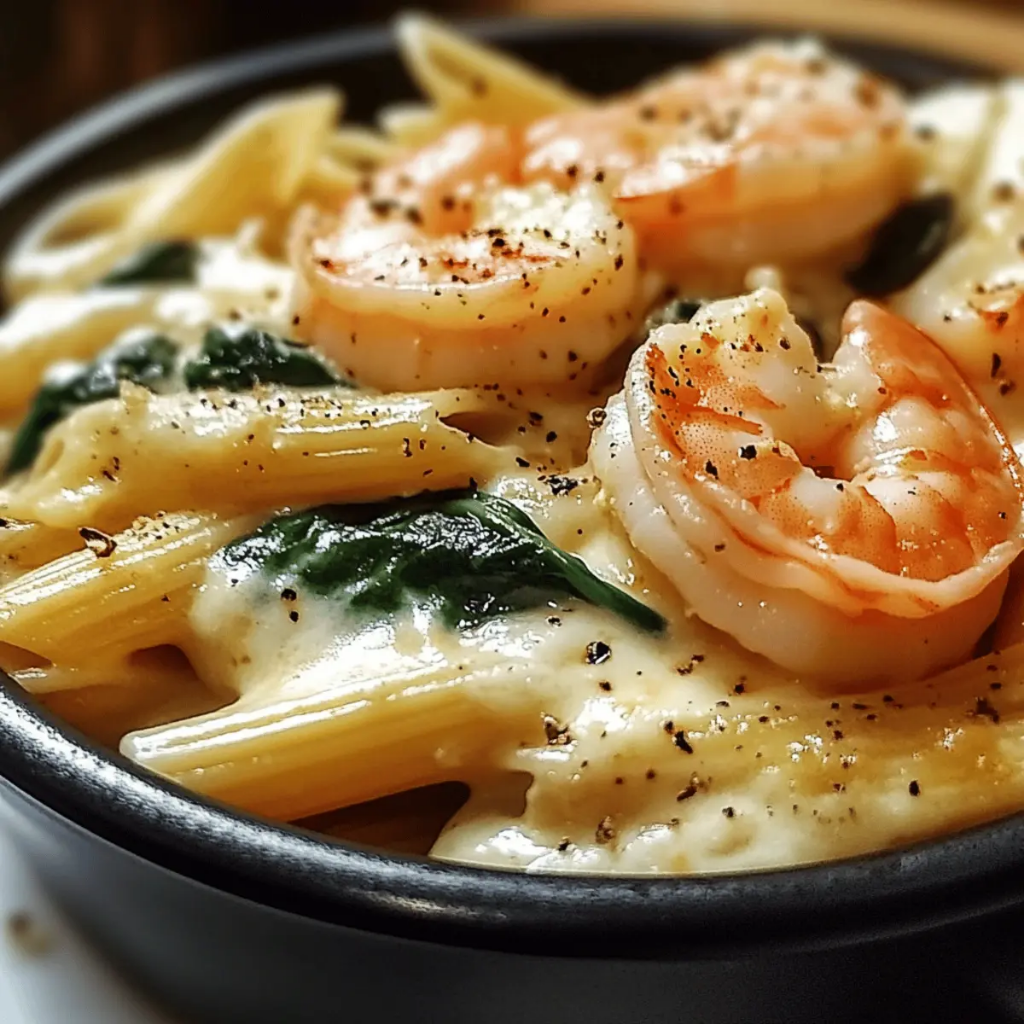 I came up with this dish on a weeknight when the fridge was stocked with shrimp and fresh spinach, but I was craving something creamy and cheesy — without turning on multiple burners or pulling out every pot I own. By the time the pasta was al dente, the shrimp perfectly cooked, and the spinach just wilted into the sauce, I had a dinner that felt luxurious but came together in under 30 minutes.