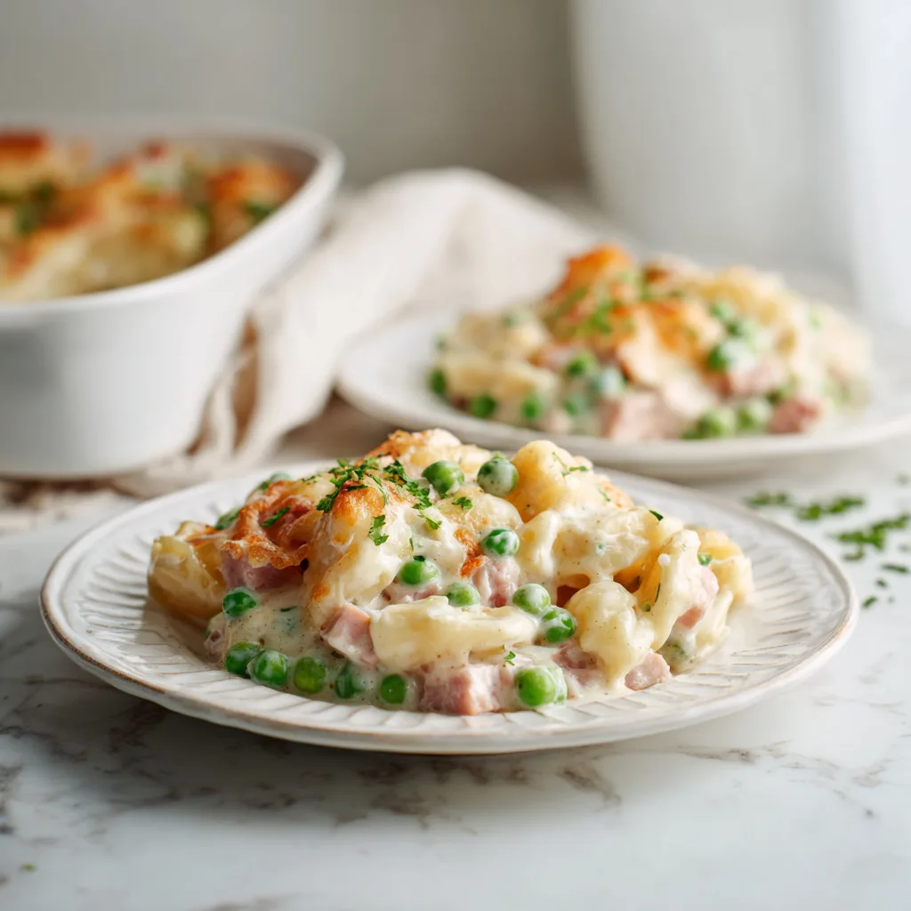Cheesy Ham and Pea Casserole – The Ultimate Creamy Comfort FoodCheesy Ham and Pea Casserole.