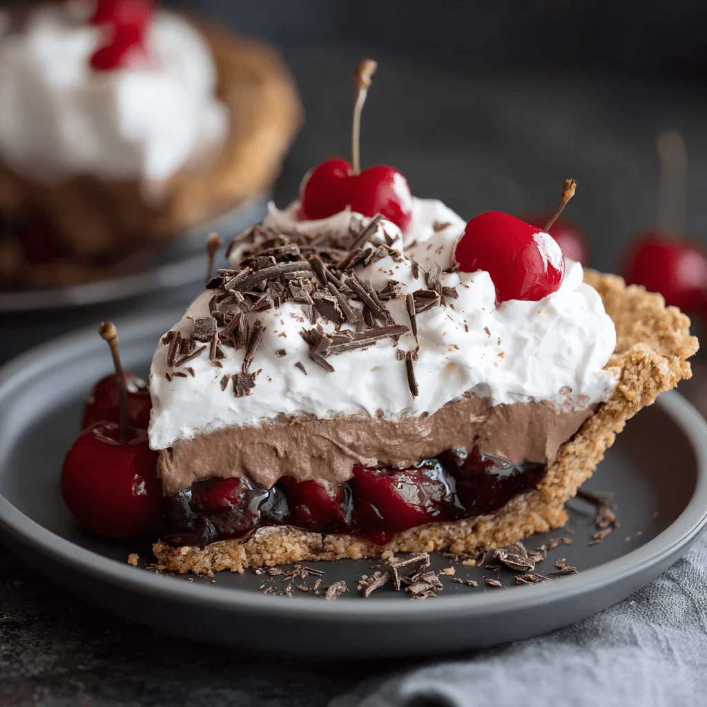 The cherry topping offers bright acidity and a natural sweetness that cuts through the richness of the chocolate. Each spoonful gives you the cool velvet of the custard, the gentle crunch of the cookie crust, and the juicy bite of cherries. It feels layered and satisfying without overwhelming your palate.