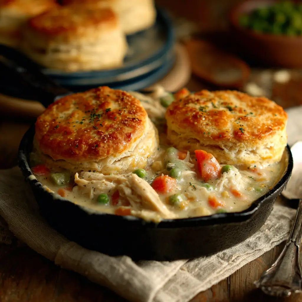 Chicken Pot Pie with Biscuits: The Comfort Food Classic That Actually Lives Up to the Hype.