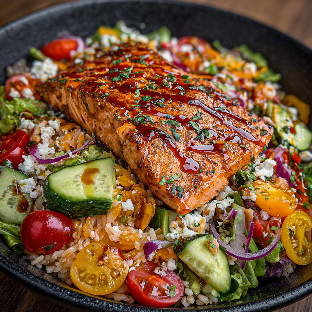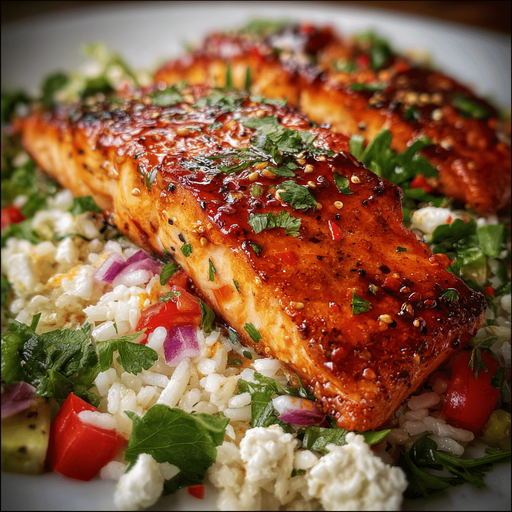 Chipotle Honey Salmon Rice Salad: The Perfect Balance of Smoky, Sweet, and Fresh.