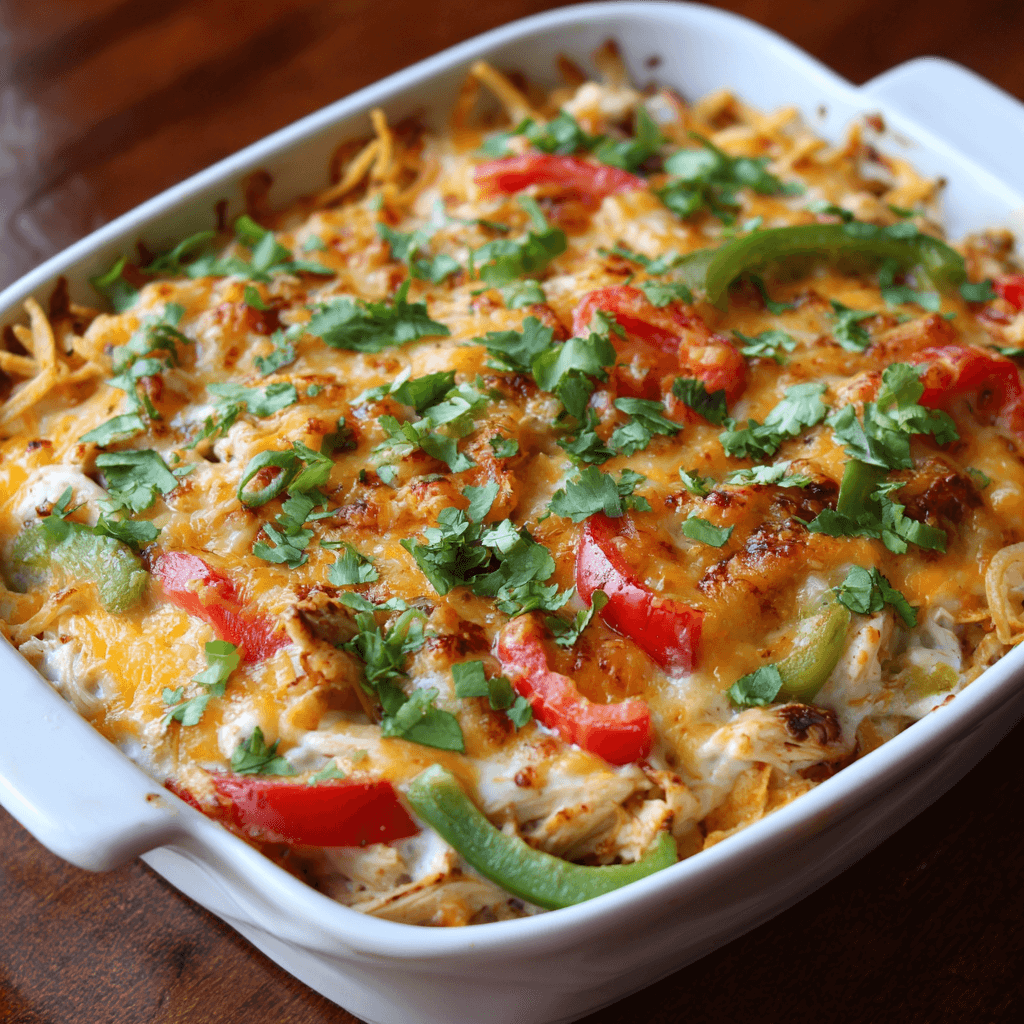 Creamy Chicken Fajita Bake – Spicy, Melty & Weeknight Gold.