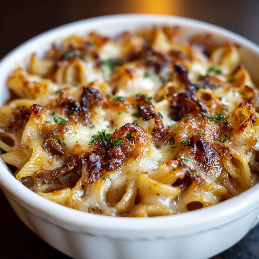 This recipe came about one winter evening when I wanted the warmth of French onion soup but needed something a little more filling than bread and broth. Pasta turned out to be the perfect addition — it soaks up the oniony broth while keeping a bit of bite, making each spoonful layered and satisfying.