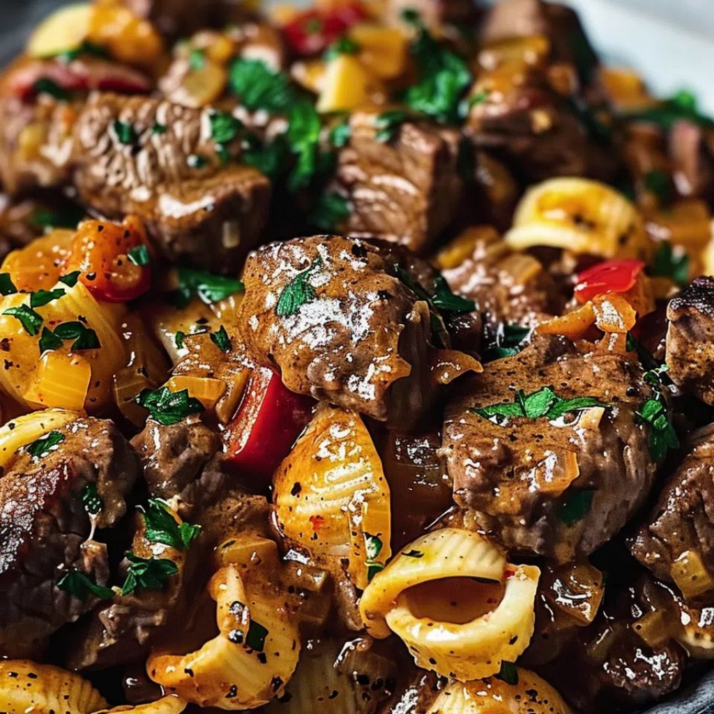 The rigatoni’s tubular shape is perfect for holding the chunky beef and creamy sauce, ensuring that every forkful delivers the full flavor experience. The pasta itself absorbs the cooking liquid, becoming more flavorful than if it were cooked separately in plain water.