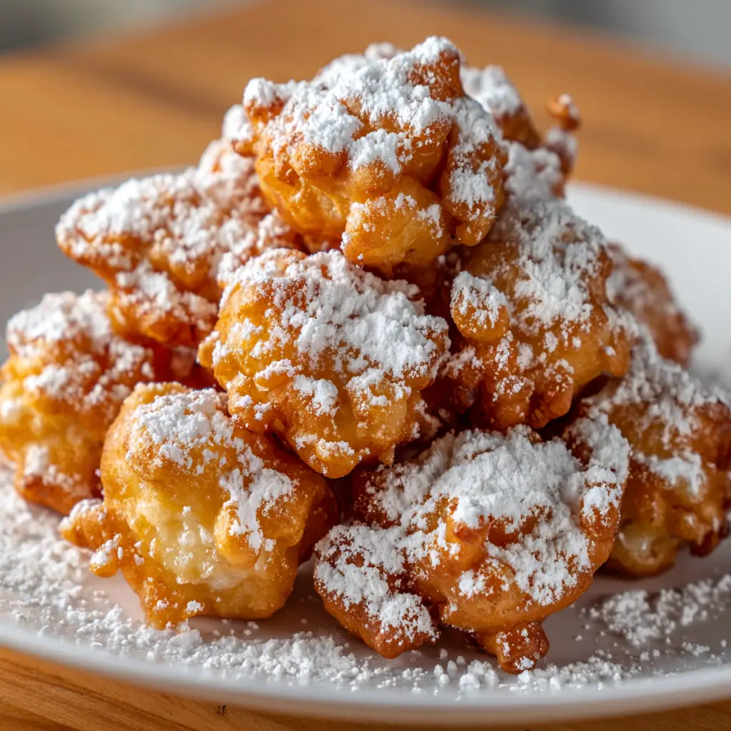 Cook the funnel cake bites at 350°F (175°C) for 5–6 minutes, flipping them halfway through. They should be lightly golden on the outside and cooked through on the inside.