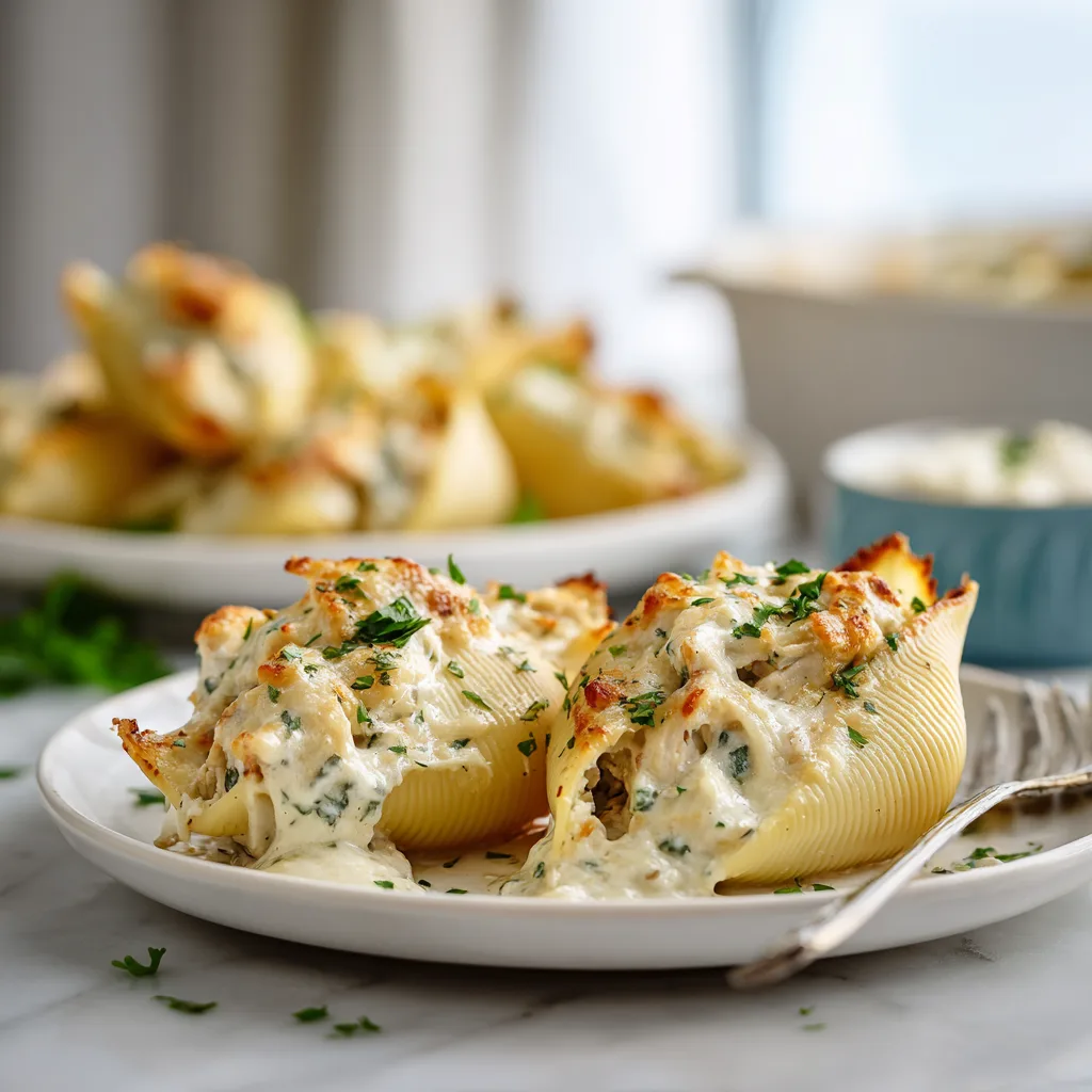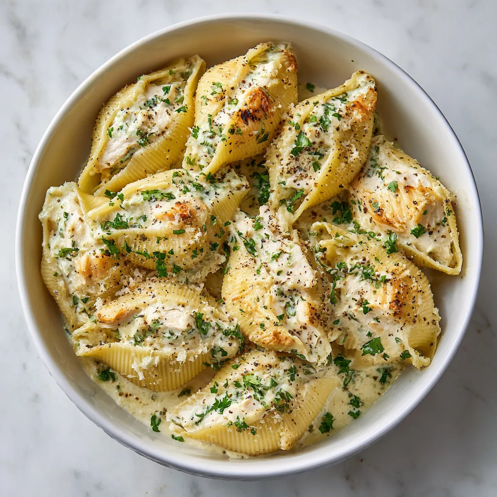 Garlic Butter Chicken Alfredo Stuffed Shells.