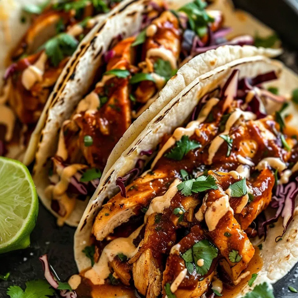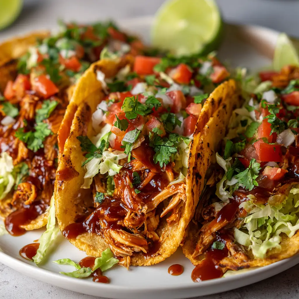 Set up a taco bar by warming the chicken and tortillas, then arranging all the toppings in separate bowls so everyone can customize their tacos. Include extra lime wedges, hot sauce, and additional barbecue sauce for those who want to adjust flavors to their preference.