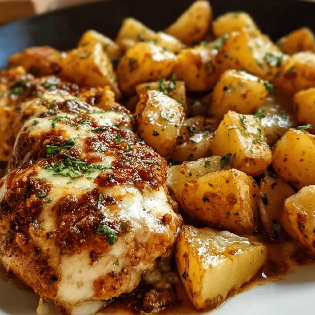 I created this recipe one weeknight when I wanted something comforting but didn’t want to juggle multiple pots and pans. The combination of crispy roasted potatoes, juicy chicken, and that irresistible Parmesan-garlic coating quickly became a family favorite. It’s a dish that’s elegant enough for company but easy enough for busy weeknights.