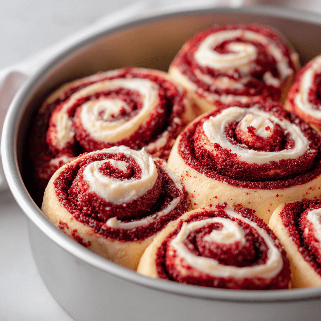 - Deeper cocoa version — Increase cocoa in the filling slightly for a richer chocolate-cinnamon swirl (keep dough cocoa light for classic red velvet).