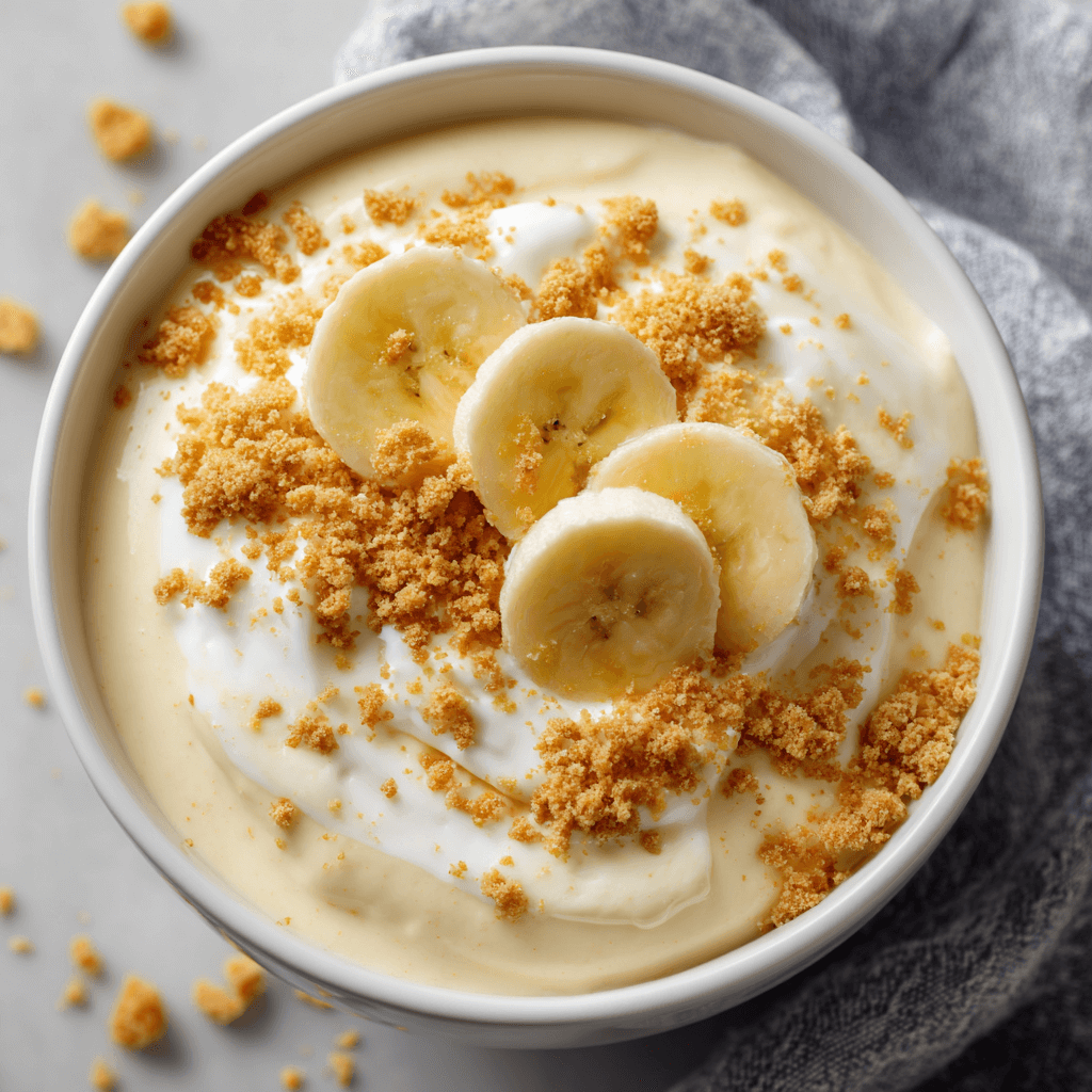 Just before serving, add a small dollop of whipped topping or extra Greek yogurt, a few fresh banana slices, and a final sprinkle of cookie crumbs or cinnamon.