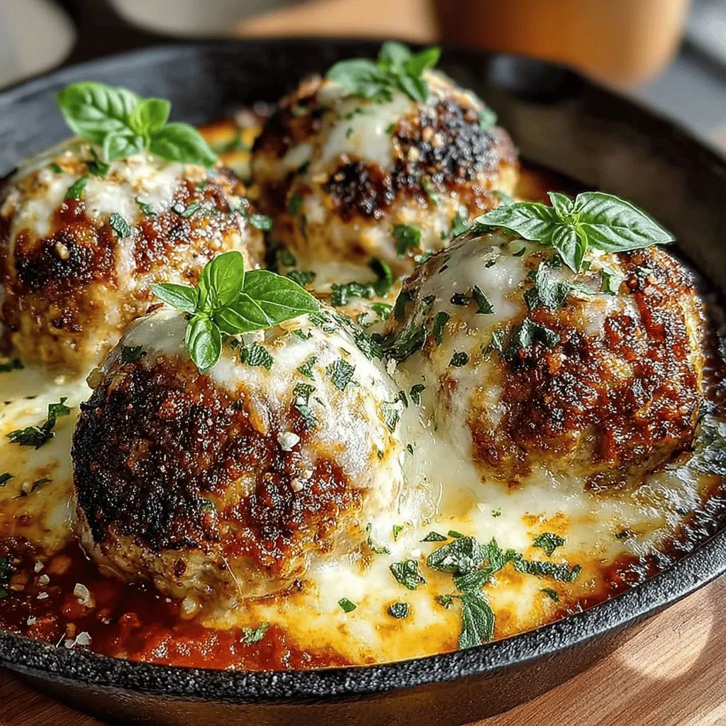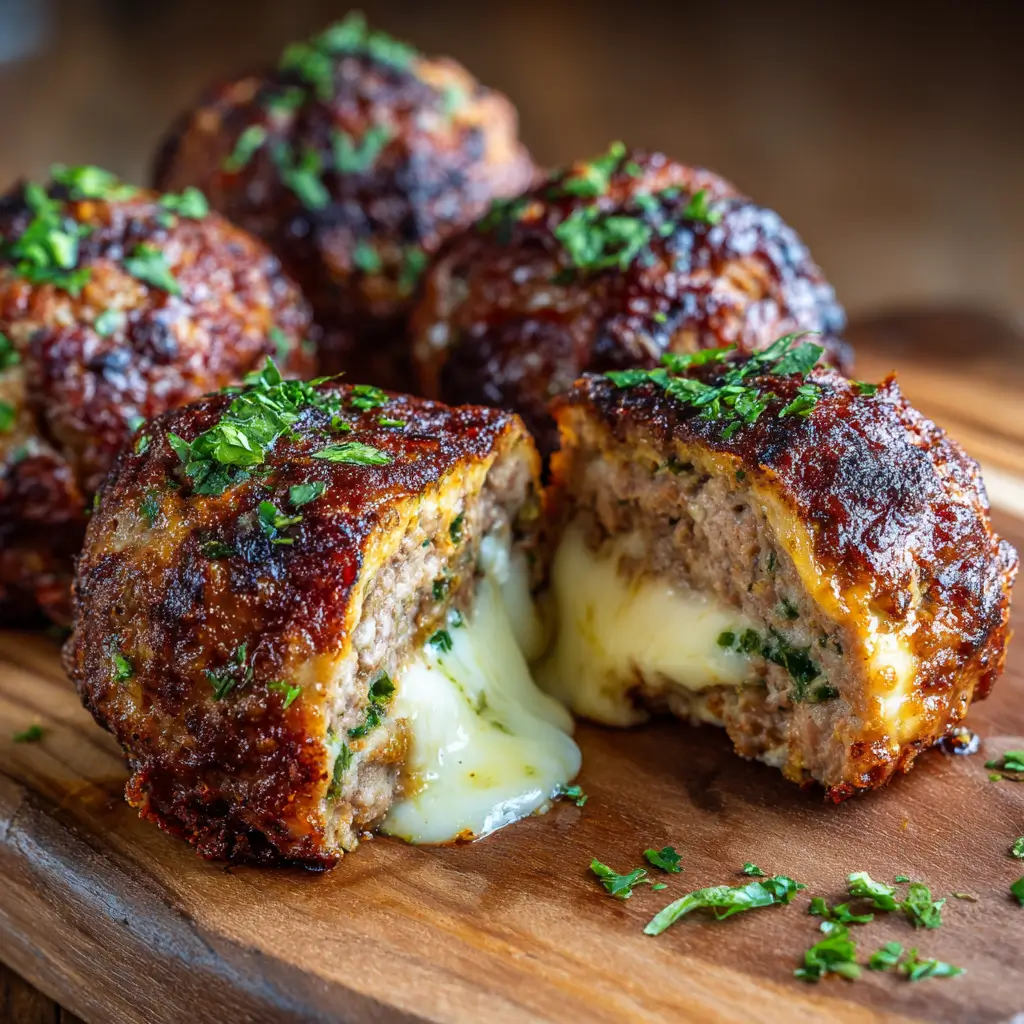 What temperature should the meatballs reach internally? For ground beef and pork, the safe internal temperature is 160°F. Use an instant-read thermometer inserted into the meat (not the cheese center) to check. At this temperature, the meat is fully cooked and the cheese will be completely melted and gooey.