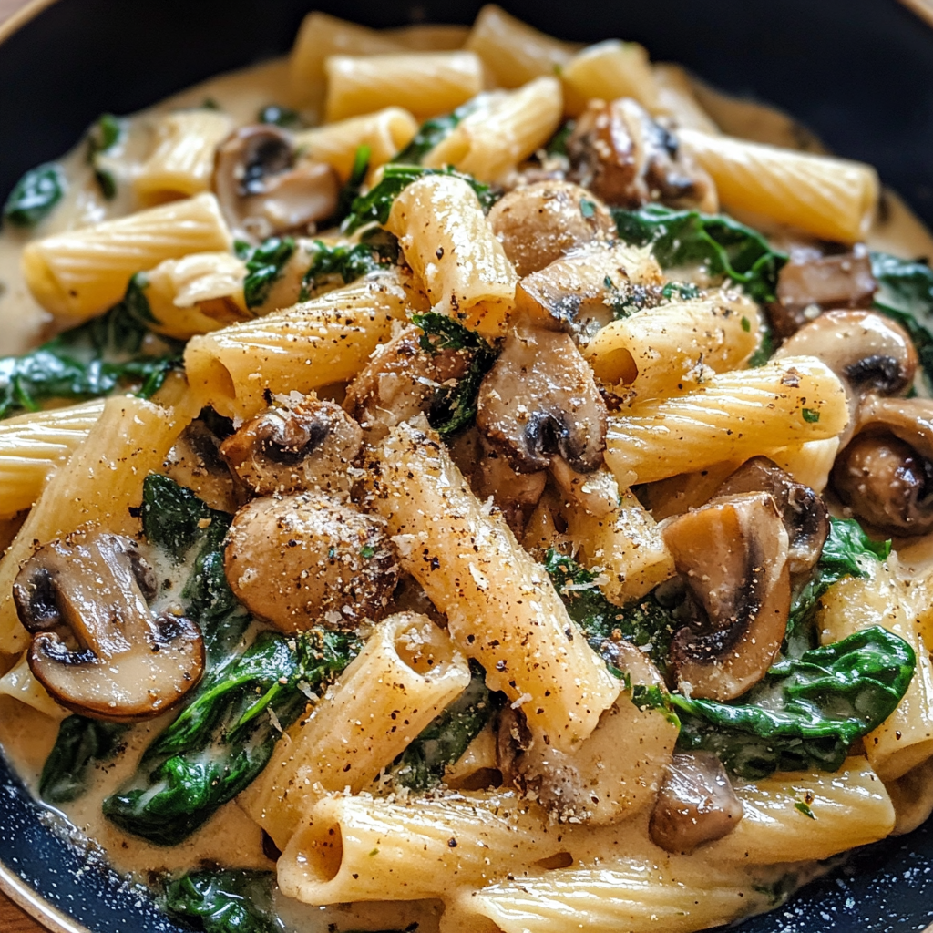 The beauty of this dish lies in its simplicity and the way each ingredient builds upon the last. Earthy mushrooms release their umami-rich juices into the pan, creating a natural sauce base that gets enhanced by garlic and white wine (or broth, if you prefer). Fresh spinach wilts into silky ribbons, while Parmesan cheese brings that sharp, nutty depth that makes everything taste more sophisticated than the effort required.