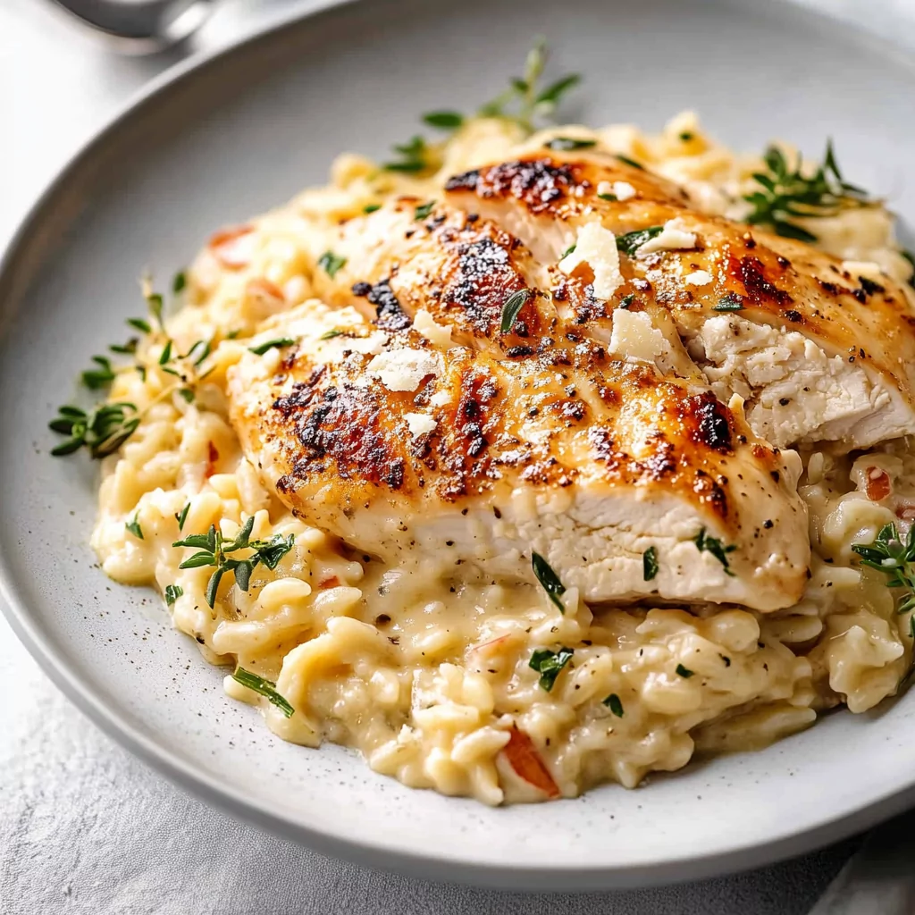 The overall effect is deeply comforting – creamy, savory, and warming. It’s reminiscent of risotto in texture but much easier to make. Every bite includes tender chicken, creamy orzo, and vegetables, creating a complete meal in one serving.