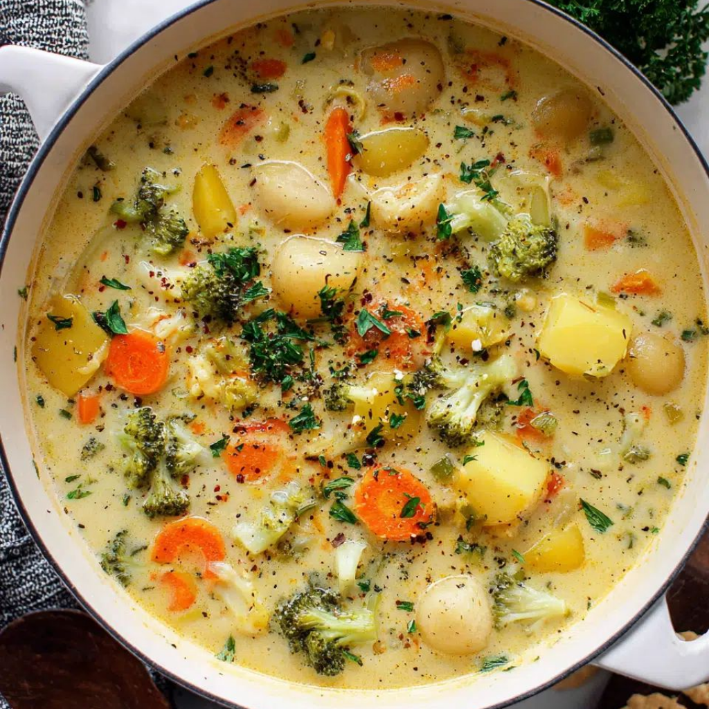 This creamy vegetable soup achieves a beautiful balance between rich and light. The blended vegetables create a naturally thick, velvety texture that coats your spoon without feeling heavy. Each spoonful has a subtle sweetness from the carrots and a mild earthiness from the cauliflower and broccoli, while the potato adds body and helps create that signature creaminess.