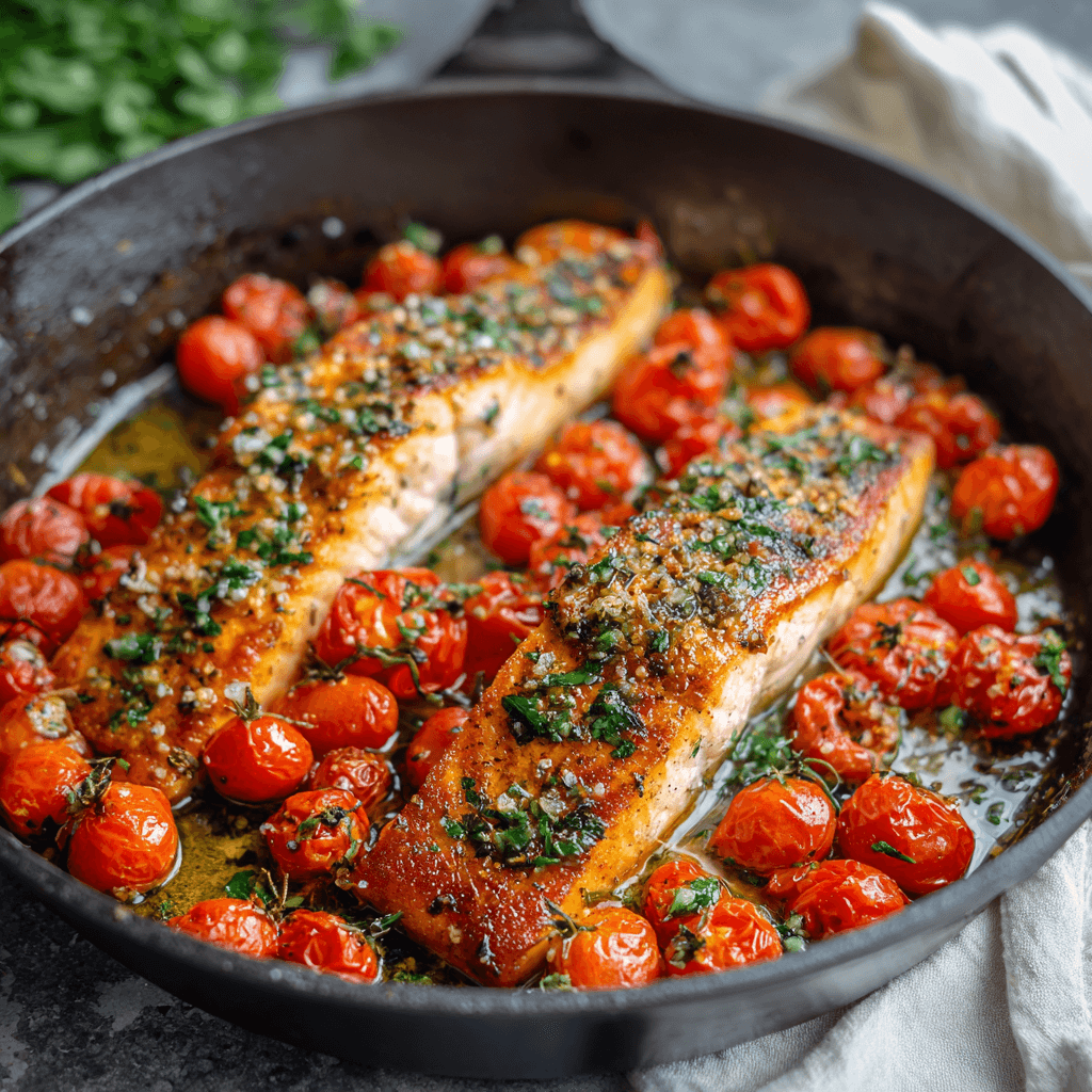 Learning to cook salmon well is one of those skills that makes you feel like a more confident cook. This recipe removes the mystery and gives you a reliable method that works every time. The combination of crispy-skinned salmon and those sweet, jammy tomatoes creates something that feels restaurant-worthy but is totally achievable on a weeknight. Once you master this technique, you’ll find yourself coming back to it again and again—it’s that good, and that easy.