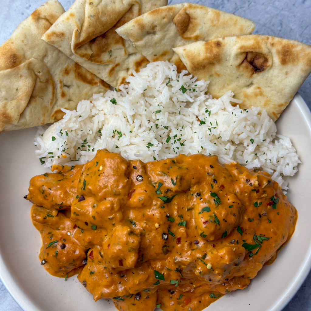 This butter chicken achieves that perfect balance of rich comfort and aromatic complexity that makes the dish so beloved. The sauce is velvety and luxurious, with a beautiful orange-red color from the tomatoes and spices. Each spoonful delivers layers of flavor—warm garam masala, earthy cumin, and sweet paprika, all rounded out by the richness of butter and cream.