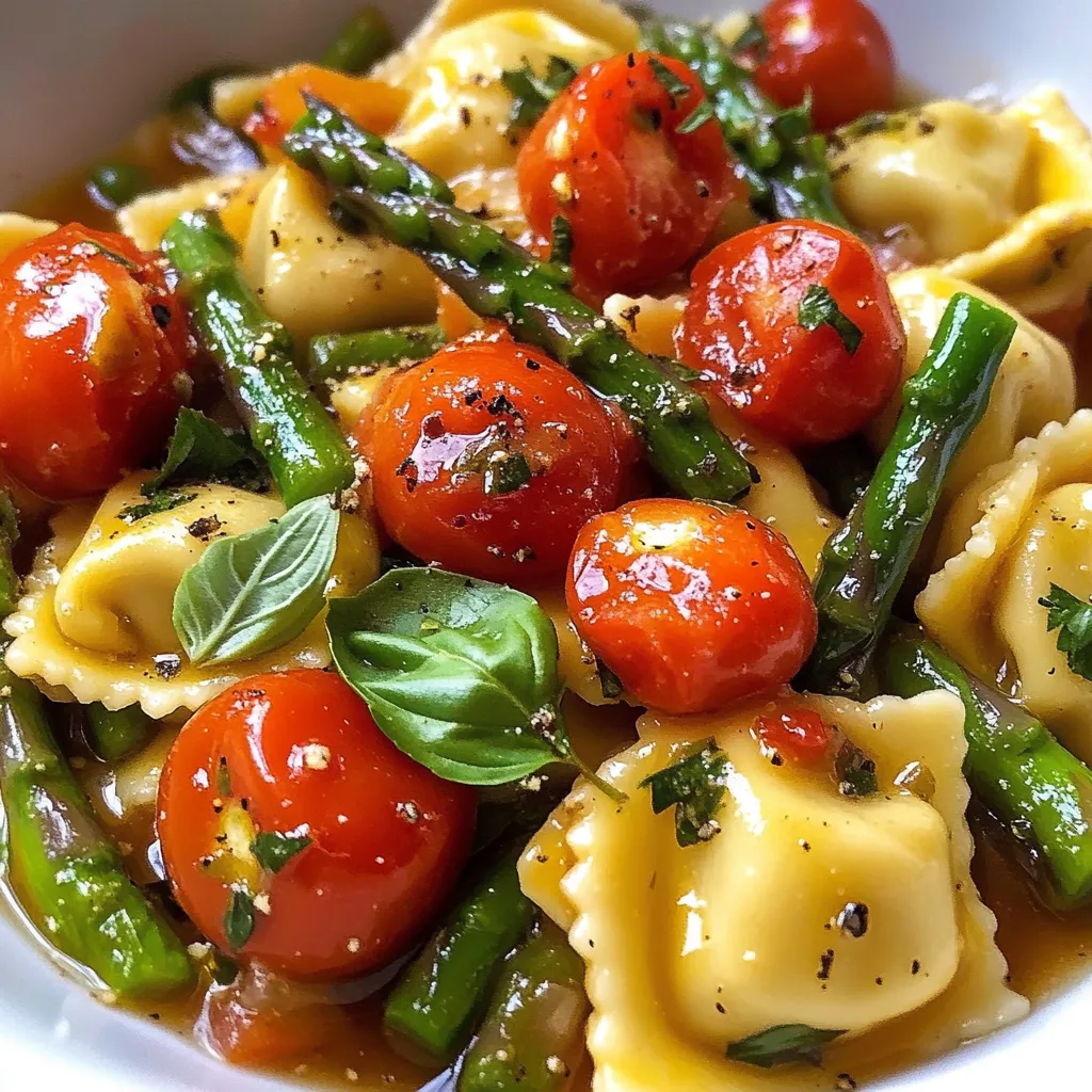 Ravioli Tomatoes Asparagus is a vibrant, herb-packed pasta that feels both fresh and comforting—perfect for weeknights when you want something quick but not boring. It highlights simple technique (proper vegetable timing and gentle tossing) and rewards you with a bright, balanced sauce. For a lighter alternative, increase the asparagus and tomatoes, reduce the cheese slightly, and finish with extra herbs and lemon for the same big flavor with a more veggie-forward plate.