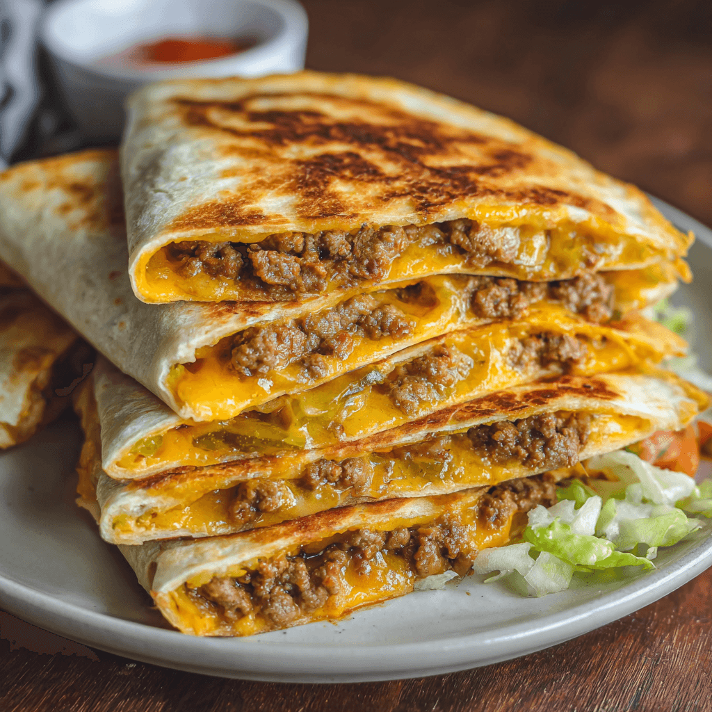 Make It Spicier: Add chopped fresh jalapeños to the beef mixture, use pepper Jack cheese, or include a spread of chipotle mayo on the tortillas before assembly. Hot sauce mixed into the beef while cooking adds heat throughout rather than just on top.