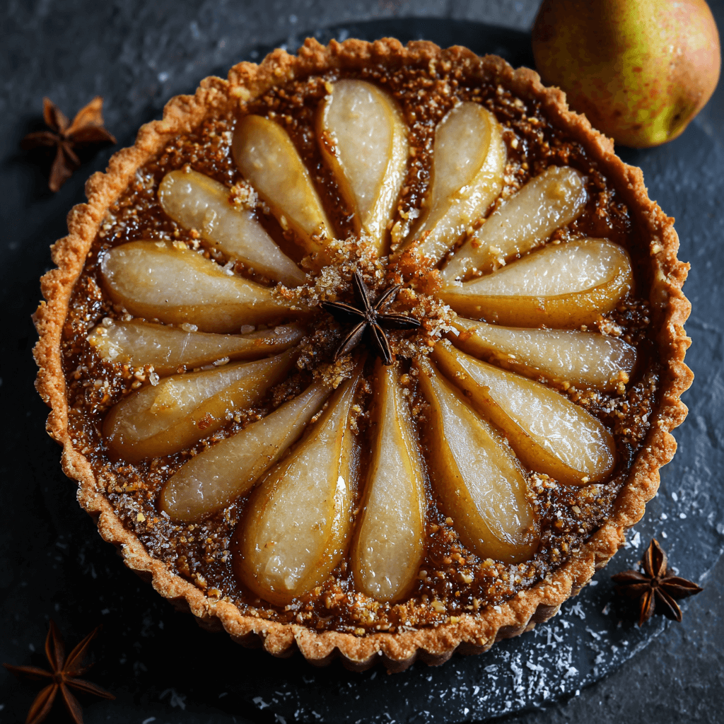 I started making this tart during autumn when pears show up at the farmers market in abundance, often cheaper than apples and just as flavorful. The combination of warm spices—cinnamon, cardamom, and a hint of ginger—transforms the subtle sweetness of pears into something genuinely special. Unlike apples, which can turn mushy, pears hold their shape beautifully while becoming tender and almost buttery in texture.