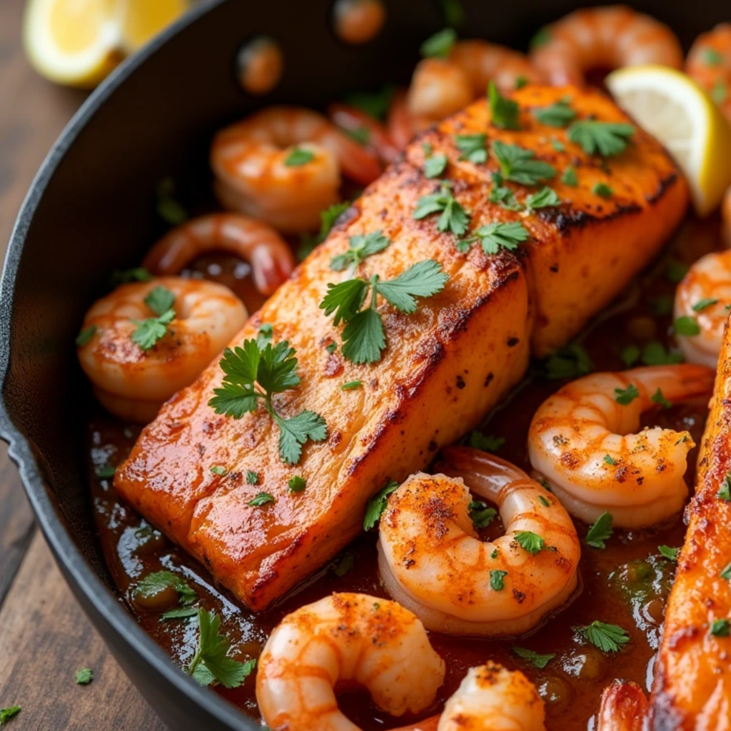 This Spicy Cajun Salmon and Shrimp Delight delivers a perfect balance of flavor and texture.