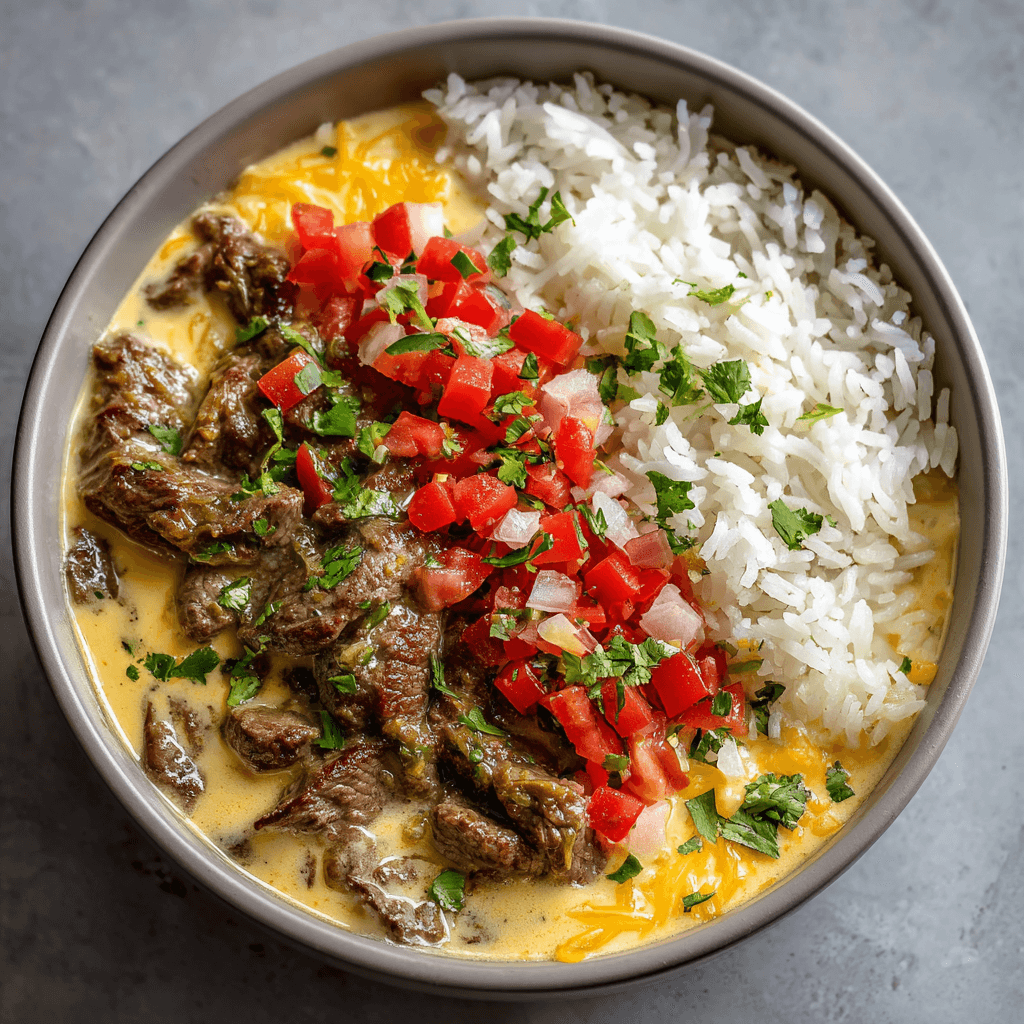 Steak Queso Rice Bowl: The Ultimate Savory and Comfort-Loaded Dinner.