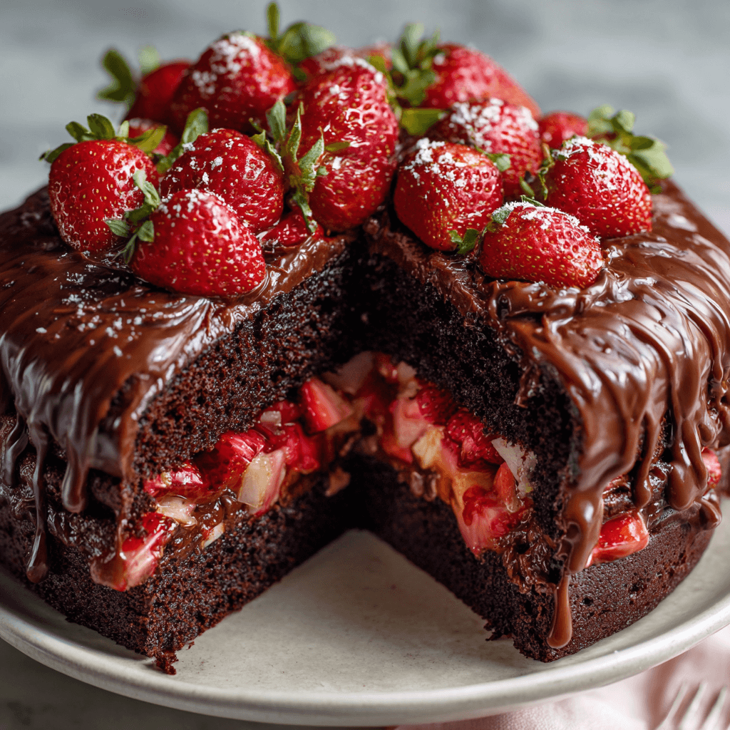 The Strawberry Chocolate Shell Cake is a study in texture and visual drama. It features a heart of light, airy strawberry mousse encased in a thin, snappy chocolate “shell” that yields with a satisfying crack when your fork hits it. The elegance comes from the contrast: the matte, vibrant red of fresh berries against a high-gloss, dark chocolate exterior.