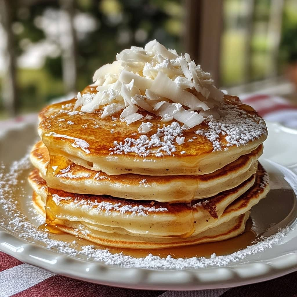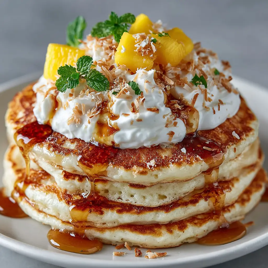 Sweet Coconut Cream Pancakes: Fluffy Tropical Breakfast Recipe.