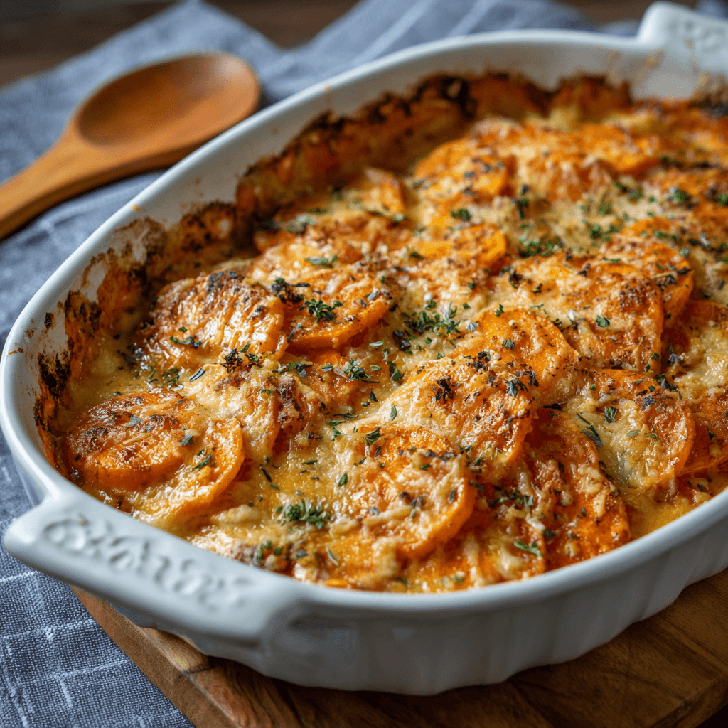 Sweet and Savory Twist: Add a layer of caramelized onions between the potato layers for extra depth and sweetness. Thinly sliced apples interspersed with the sweet potatoes create an interesting sweet-savory contrast that works surprisingly well.