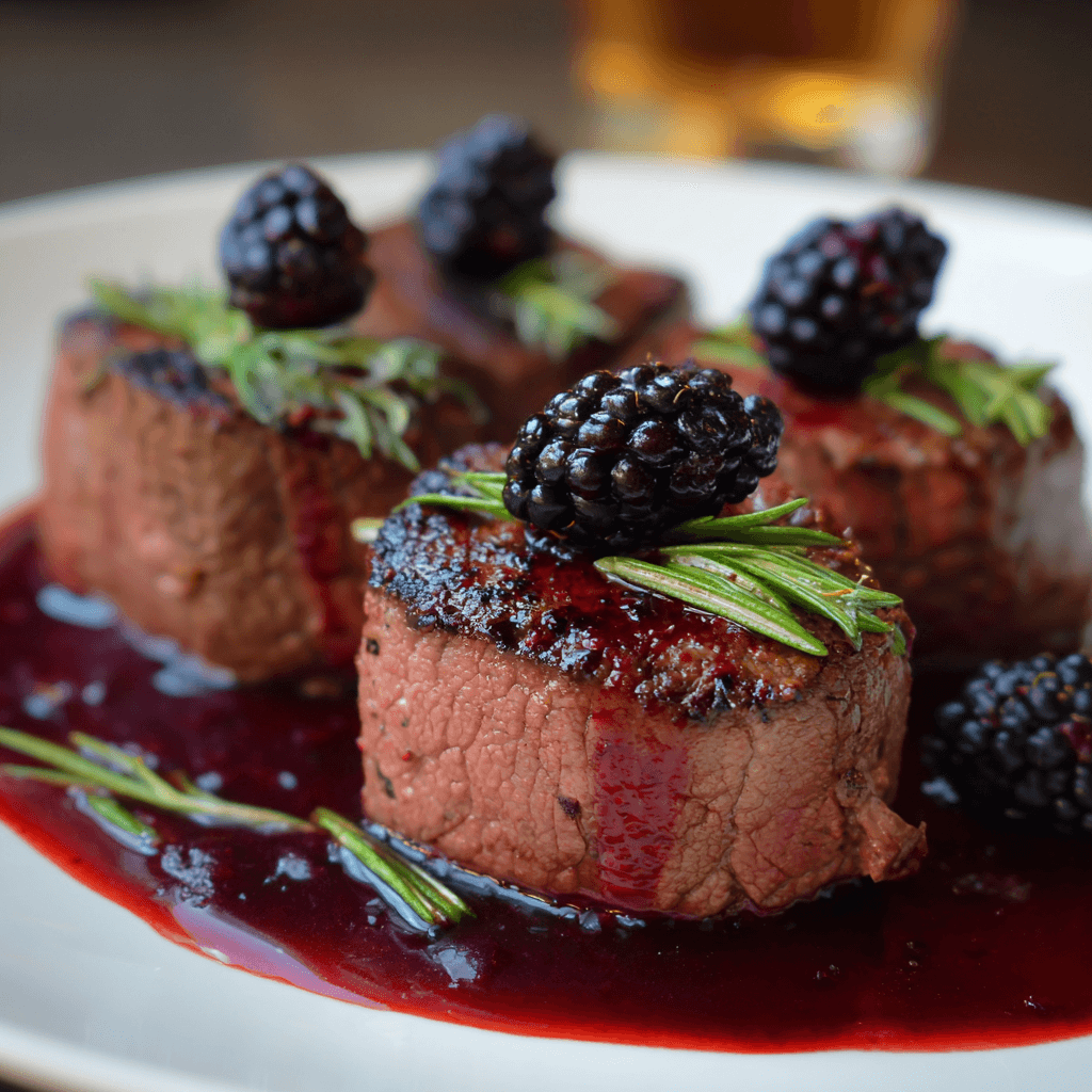 Venison Tenderloin with Blackberry Pan Sauce – Elegant Wild Game Dinner.