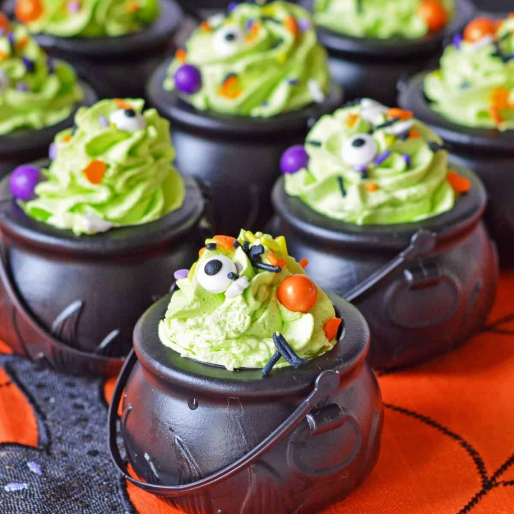 Can I make these without food coloring? Absolutely. White whipped cream still looks like bubbling foam on top of a dark potion. You could also use chocolate whipped cream for an all-chocolate version. The green color is fun but not essential to the concept.